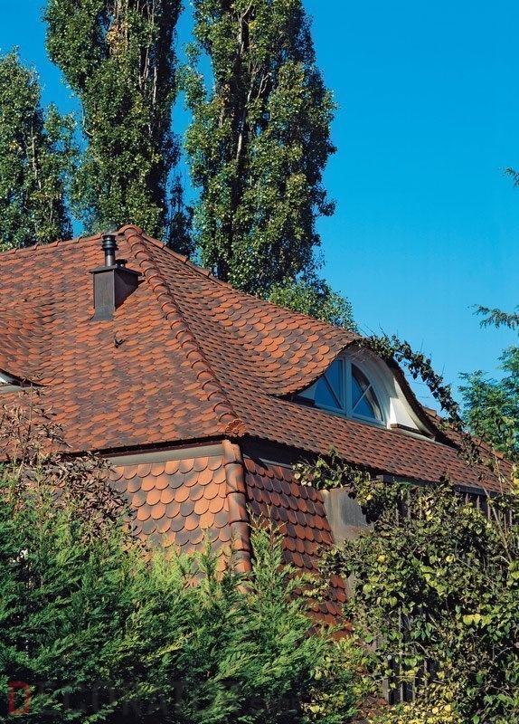 Керамическая черепица рядовая CREATON Klassik Biber Nuance пестро-красный муаровый ангоб