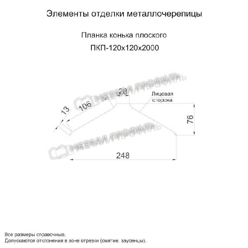 • Планка конька плоского 120х120х2000 (ПЭ-01-1014-0.45) не ржавеет.