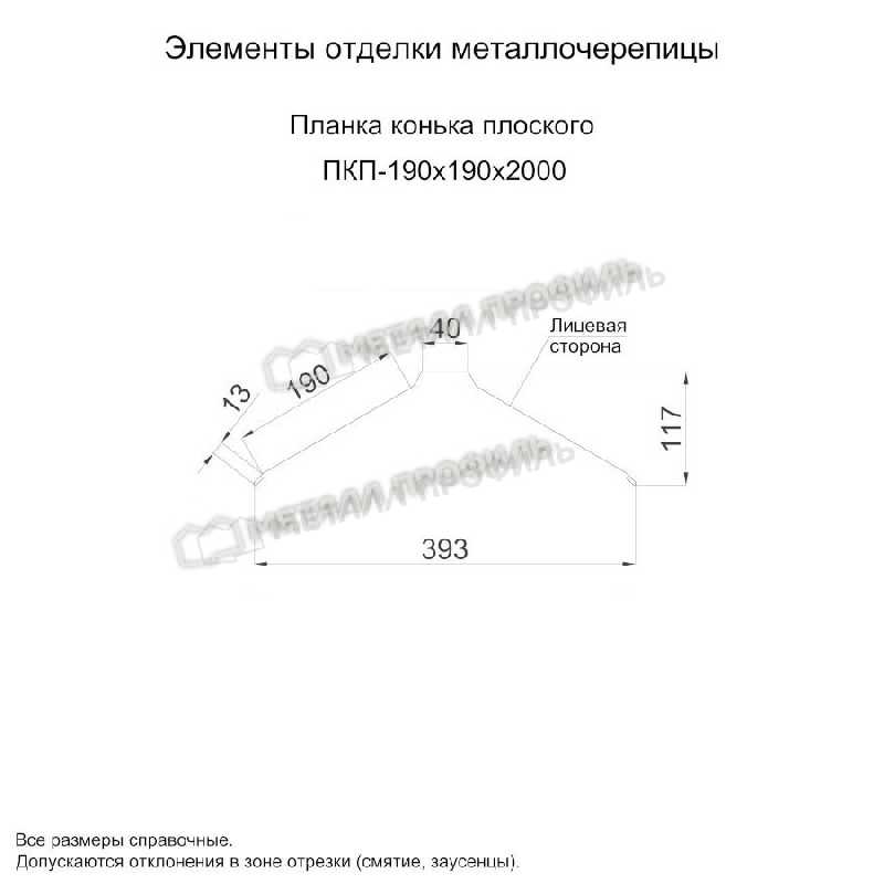 Планка конька плоского 190х190х2000 (ПЭ-01-1018-0.45)