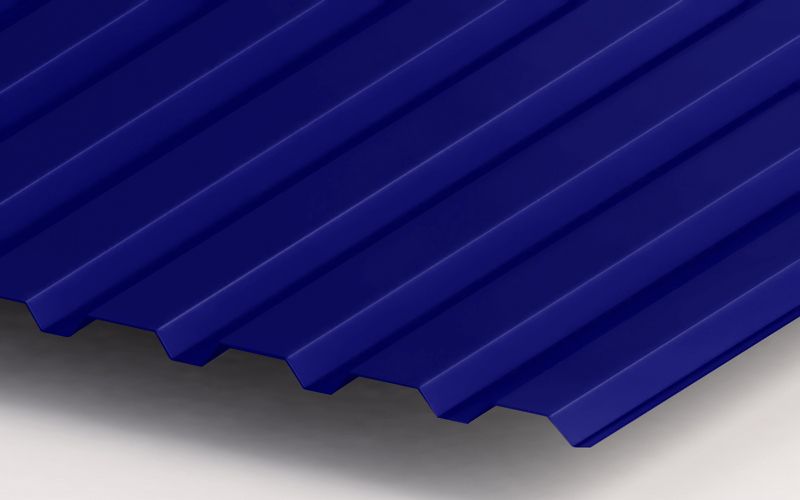 Профнастил ЮджинСтрой RN20 с покрытием из полиэстера толщиной 0,5 мм в цвете Ral 5002 ультрамариново-синий - это надежное и качественное покрытие для вашей кровли. Этот профнастил отличается высокой прочностью, устойчивостью к коррозии и влаге, а также долговечностью.